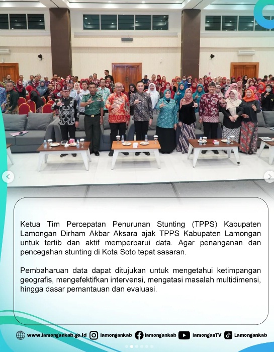 Ketua Tim Percepatan Penurunan Stunting (TPPS) Kabupaten Lamongan Dirham Akbar Aksara ajak TPPS Kabupaten Lamongan untuk tertib dan aktif memperbarui data. Agar penanganan dan pencegahan stunting di Kota Soto tepat sasaran.
