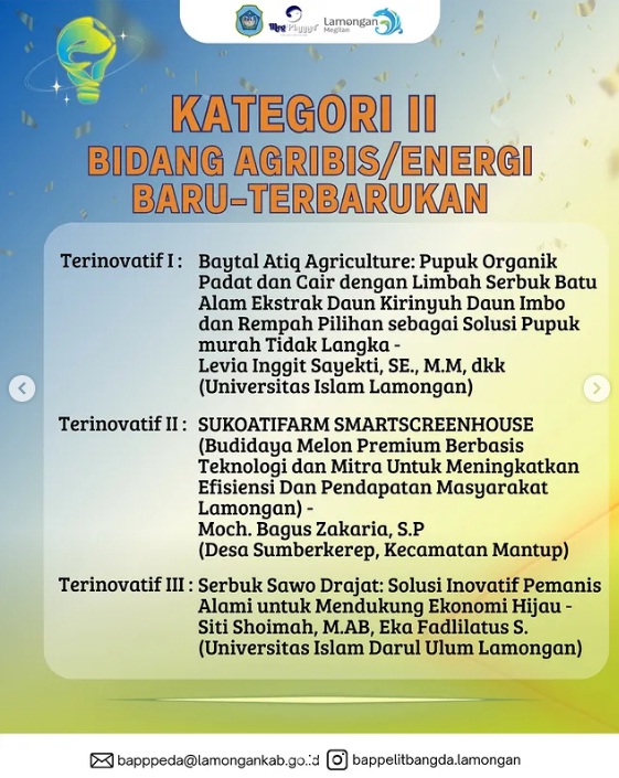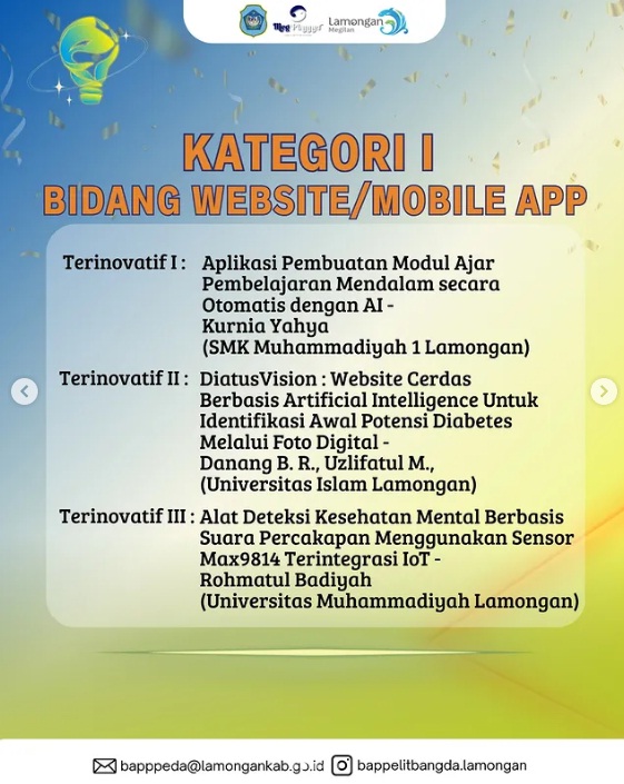 Selamat kepada para inovator yang menjadi juara Megnotek 2025. Diharapkan para inovator untuk segera menghubungi bidang litbang untuk konfirmasi. Untuk informasi lebih lanjut silahkan hubungi 0857-8443-8533 / 0851-5630-6022 Sekali lagi selamat dan sampai jumpa di MegNotek 2026 Semangat terus berinovasi.